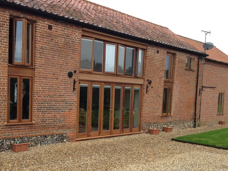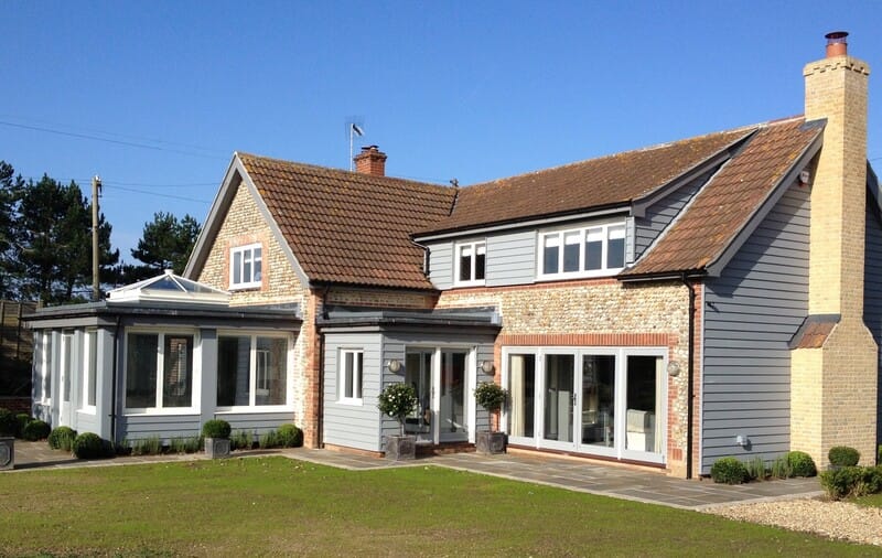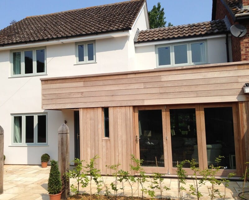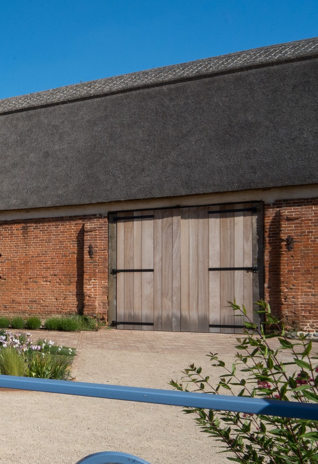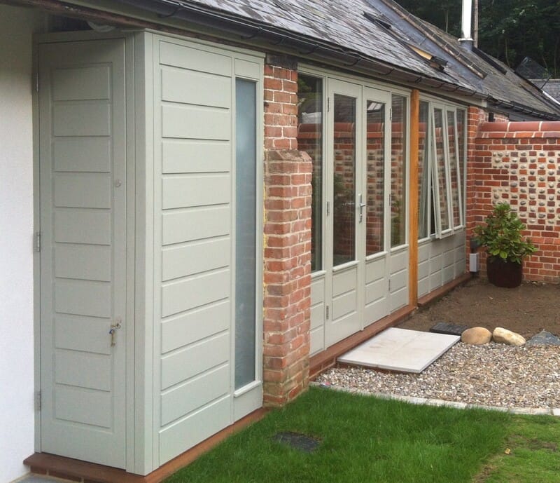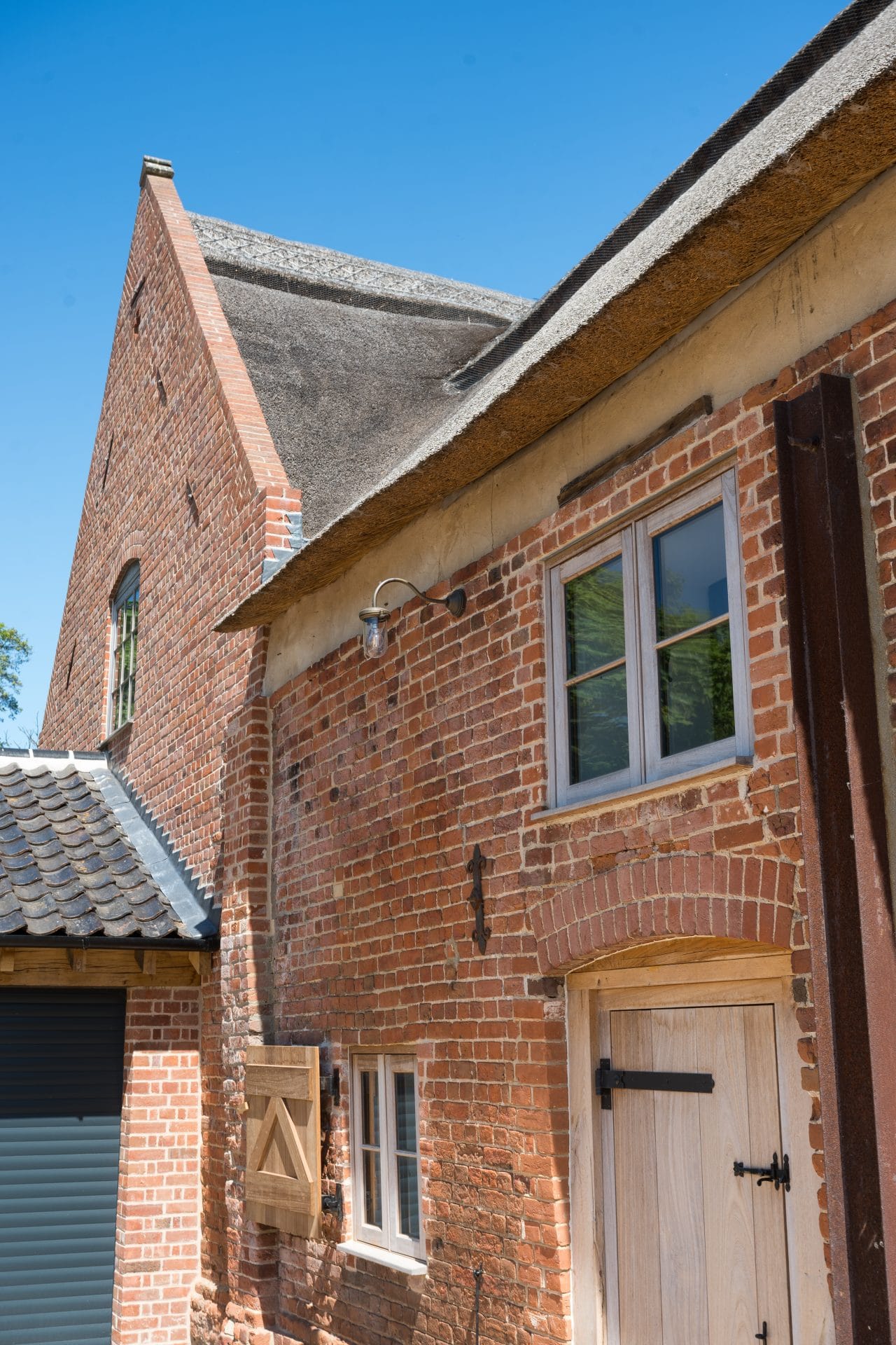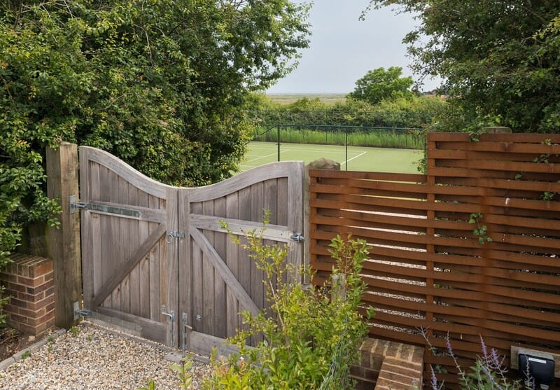 The garage doors, spiral balance sliding sash windows and french doors were all made in Accoya, which is designed for its superior stability and durability. Whilst the external gates were made in Iroko to allow them to weather to stunning grey/silver tones.
