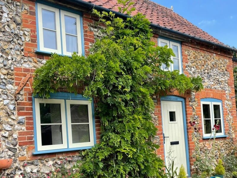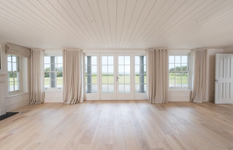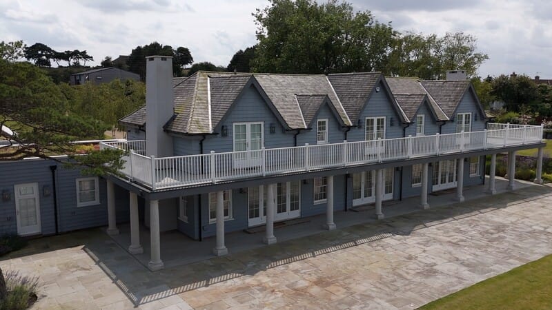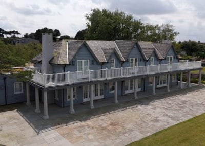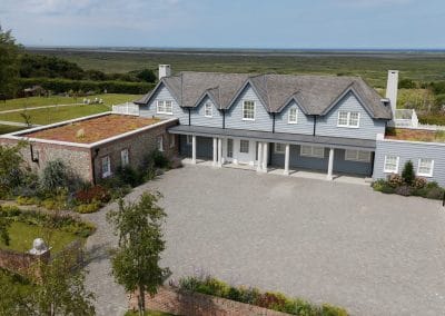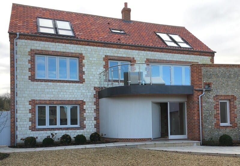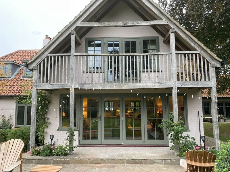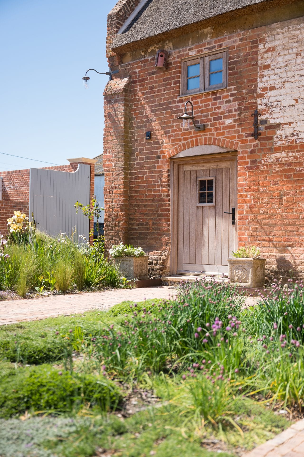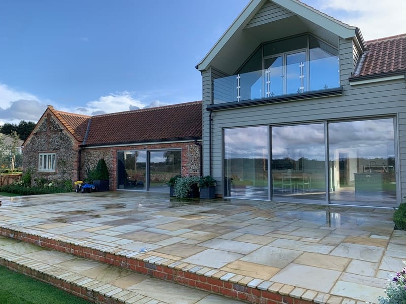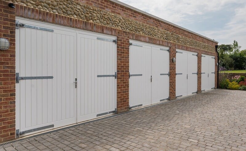 The garage doors, spiral balance sliding sash windows and french doors were all made in Accoya, which is designed for its superior stability and durability. Whilst the external gates were made in Iroko to allow them to weather to stunning grey/silver tones.