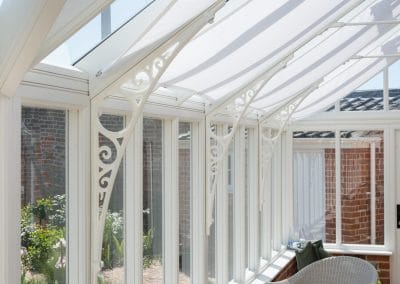 Whilst we ensured that it was traditional in style for example being single glazed, it also has plenty of modern feature to ensure low maintenance. Made in Accoya, with powered vents to the roof and projection hinges on the doors which allow for 180 degrees opening. It also features powder coated aluminium capping system and self-clean coating to the roof glass.